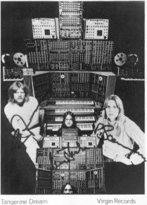 Ein Autogrammfoto mit der klassischen Besetzung Froese, Franke, Baumann (v.l.n.r.- vergrößern). Das Foto war ein Präsent, das ein in Berlin wohnender Fan 1977 bei einem spontanen Besuch von Edgar Froese in seiner Berliner Wohnung erhielt.